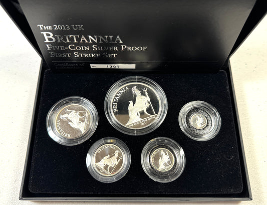 2013 UK Britannia Five-Coin Silver Proof First Strike Set - # 1391/1500 in OGP