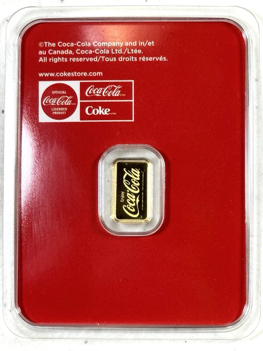 Coca Cola - 1 gram BAR .9999 Fine Gold Bar Sealed TEP - In Stock