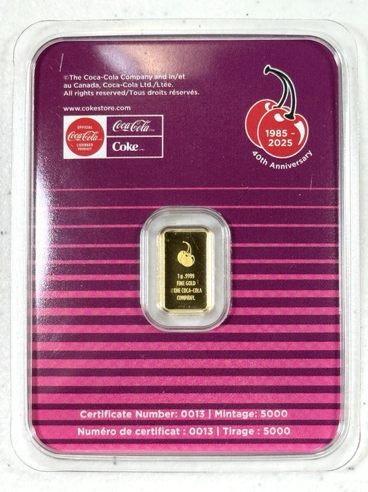 Coca Cola Cherry Coke - 1 gram BAR Gold Bar - In Stock Sealed TEP S# 0013/5000🔥