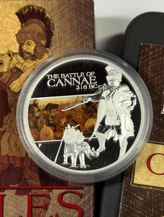 2009 Tuvalu Famous Battle of Cannae 1 oz Proof Colorized Silver Coin in OGP
