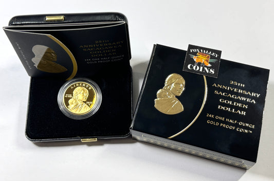 25th Anniversary Sacagawea 2025 Golden Dollar 24K One Half-Ounce Gold Proof Coin