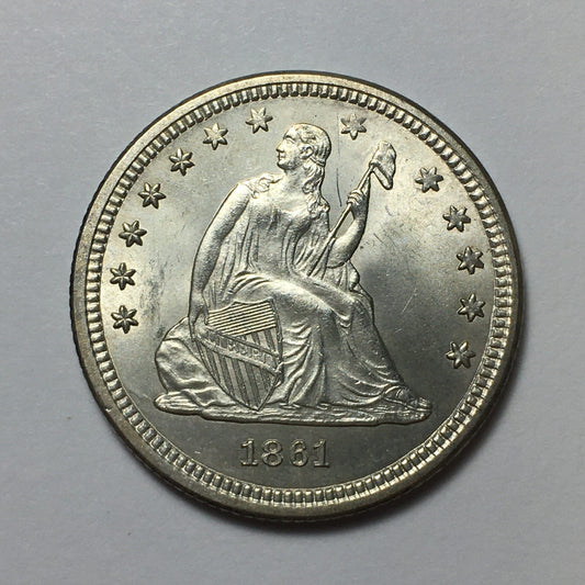 1861-P Seated Liberty Silver Quarter - Civil War Date - High Grade & Lustrous