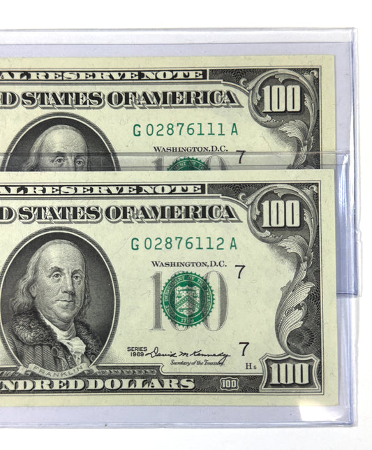 1969 Series Chicago-IL Consecutive $100 Notes Brilliant Uncirculated in Flips - Rare!