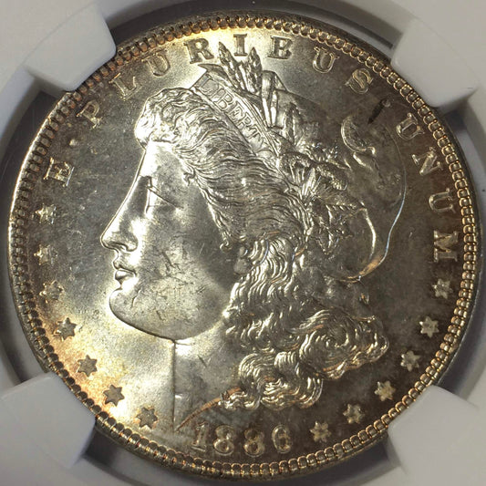 1886 Morgan Silver Dollar NGC MS63 Cartwheel Luster - Reverse Rim Rainbow Toned
