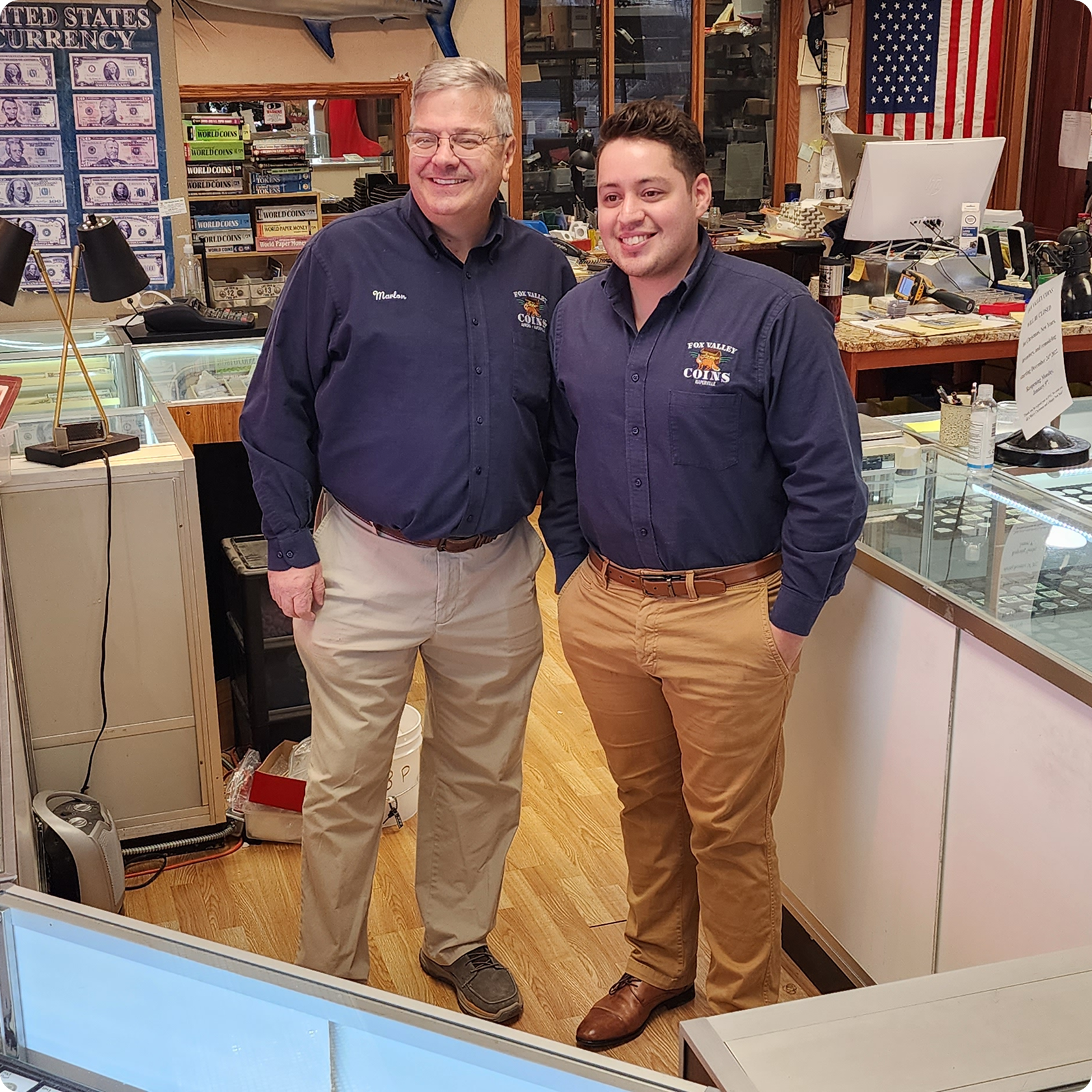 Fox Valley Coins Inc. purchases a number of items. We Specialize in Precious Metals (Gold & Silver), U.S. Coins, Rare Currencies, Foreign Coins, Coin Collections, Commemorative Mints, Scrap Gold Jewelry, Sterling silverware, and more!