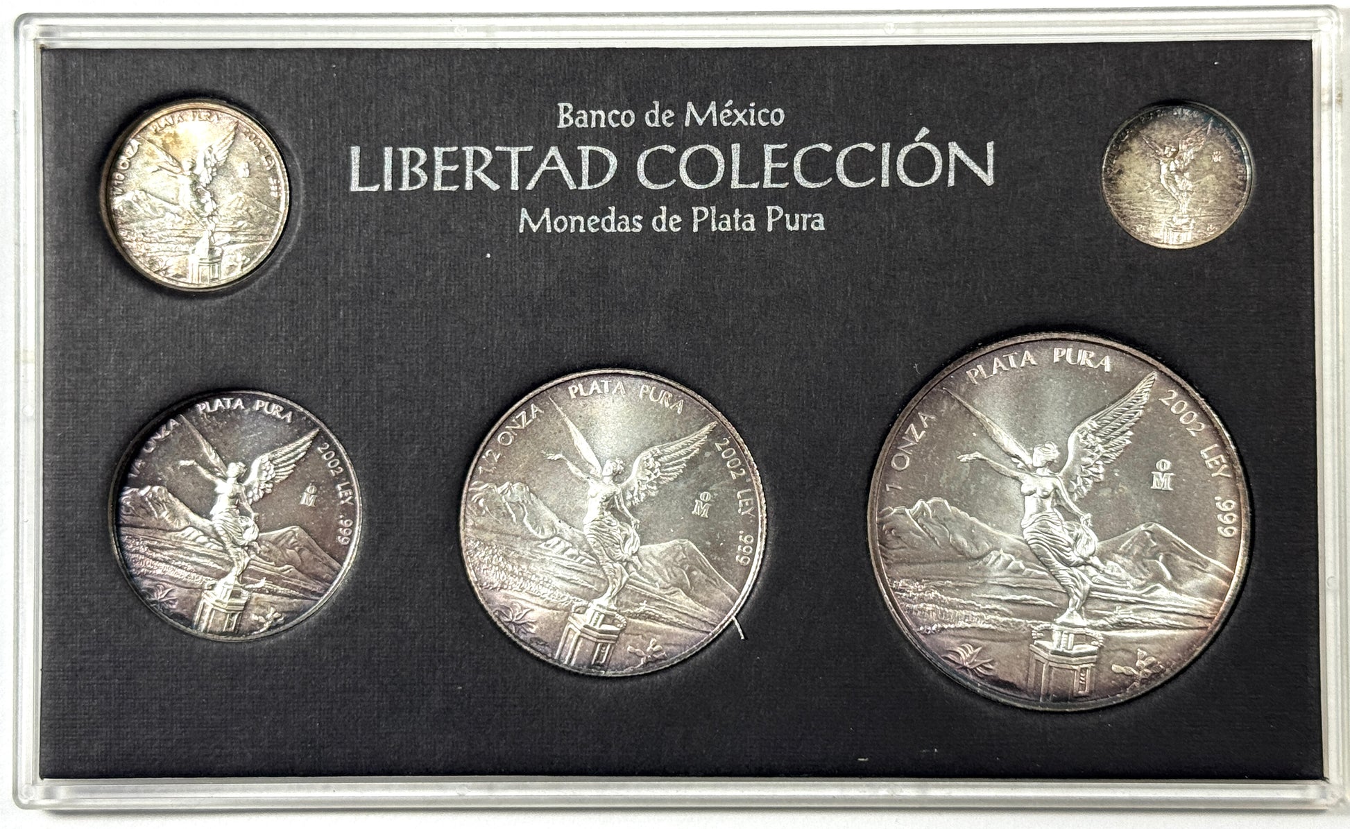 2002 Mexico 1, 1/2, 1/4, 1/10/ 1/20 oz - 5 Coin Set .999 Silver Libertad in Case